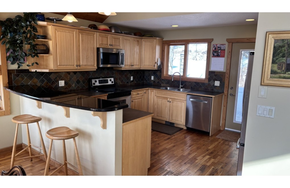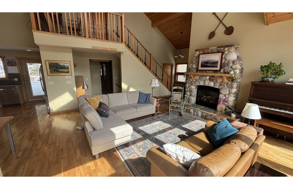 The home features a thoughtful mix of carpet, hardwood, and tile flooring throughout, creating a warm and functional interior. The kitchen comes equipped with four appliances, and a washer and dryer are also included for your convenience. A cozy gas fireplace provides the perfect place to relax, while the deck and balcony offer great outdoor spaces to enjoy the surrounding views.