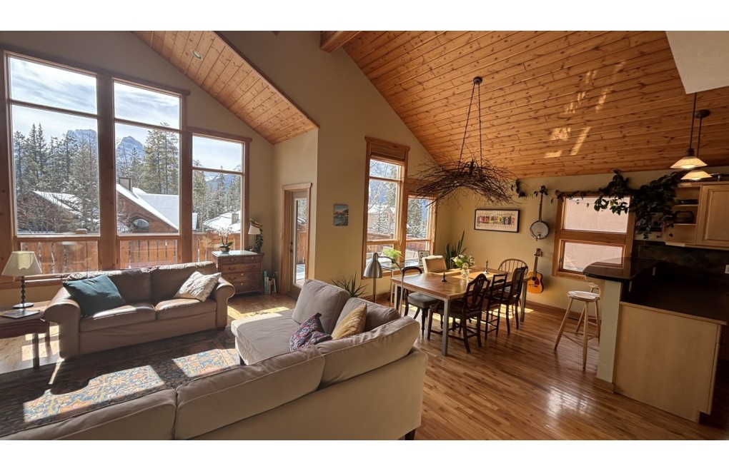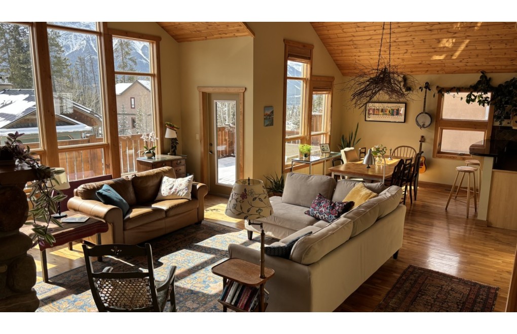 This 3 bedroom plus den, 2 bathroom single-family home is located in the desirable Eagle Terrace area of Canmore, offering comfort, space, and beautiful mountain living. The home backs onto open space at the foot of Lady Mac, with trails right out the back door, providing immediate access to the outdoors. It is also exceptionally quiet in this area—at night, with the bedroom windows open, the only sound you’ll hear is the wind!