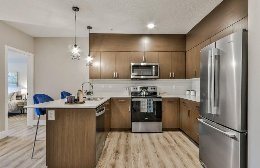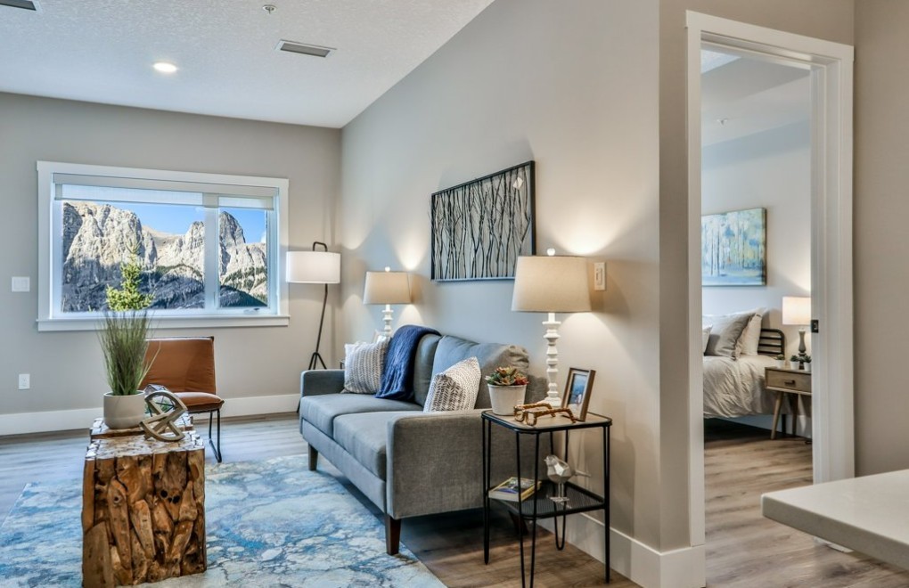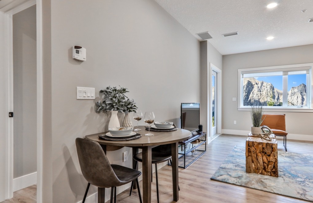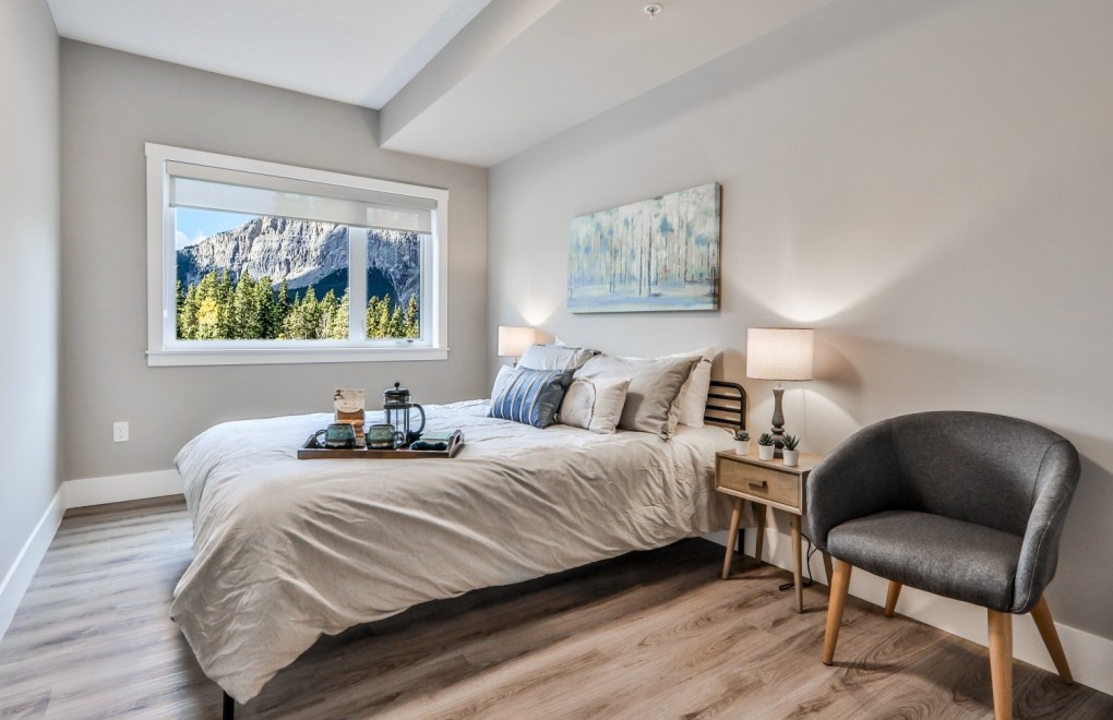 The Rundle House complex is conveniently located besides the Shops of Canmore, and within walking distance to downtown Canmore. All units have in-suite laundry and access to amenities such as the fitness centre, pool and hot tub at the hotel adjacent to the property. The high-end stainless steel appliances, quartz countertops and high ceiling makes the unit feel luxuries and homey.
